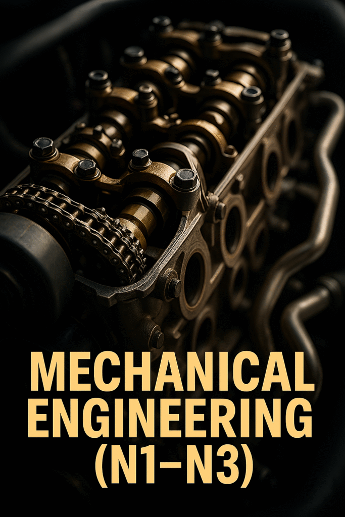 Our Mechanical Engineering programme at N4 to N6 gives learners a thorough blend of theory and practical workshop experience. The course builds from core scientific and numerical skills at N4 into specialised technical subjects and system level thinking by N6. Graduates are prepared for technician roles, workshop supervision and further engineering study.